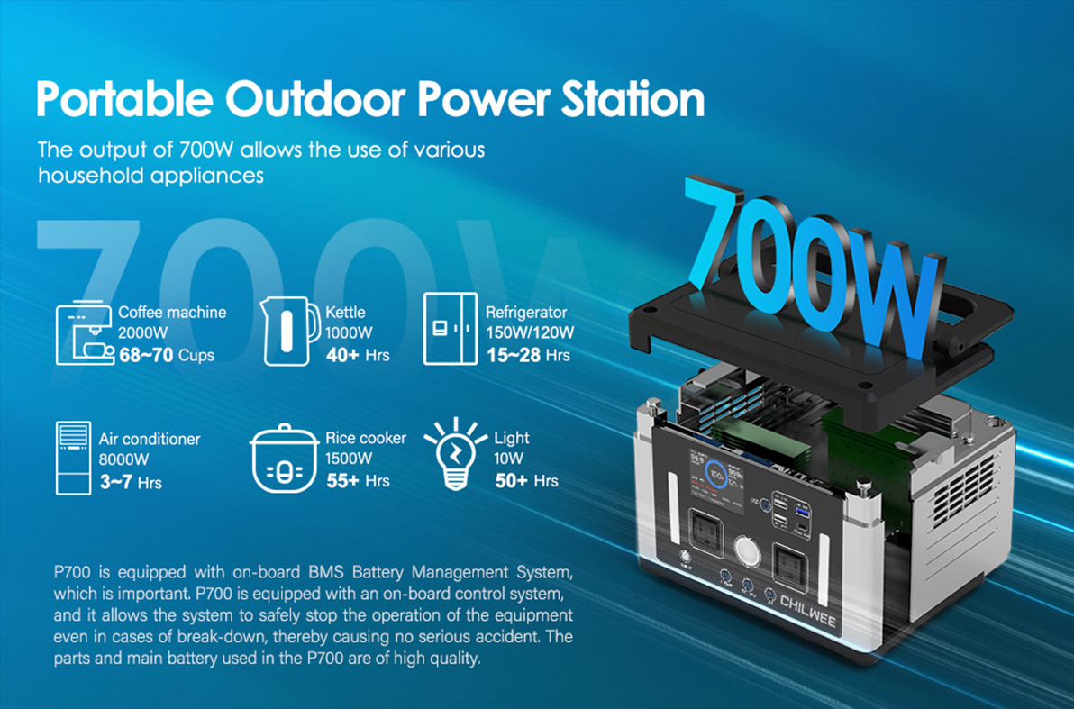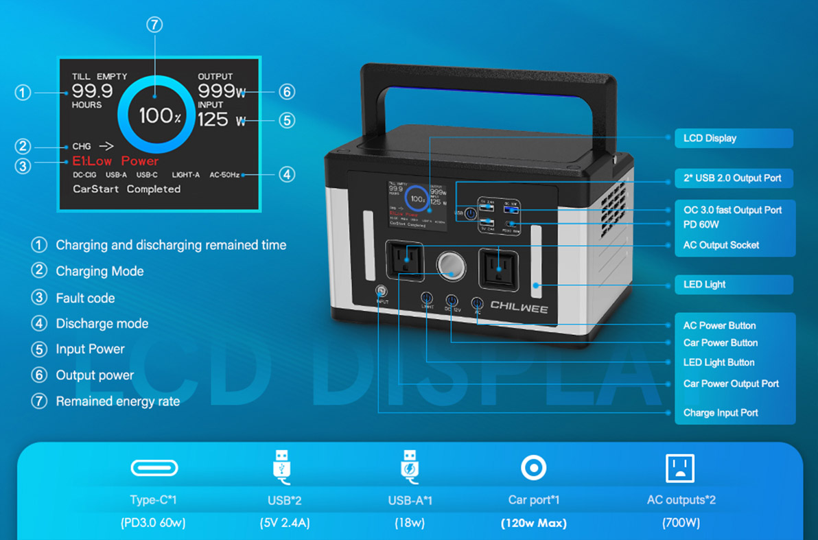 1. ການແນະນໍາຜະລິດຕະພັນຂອງ 700W Smart Portable Power Station ສໍາລັບການສາກໄຟແສງສະຫວ່າງ